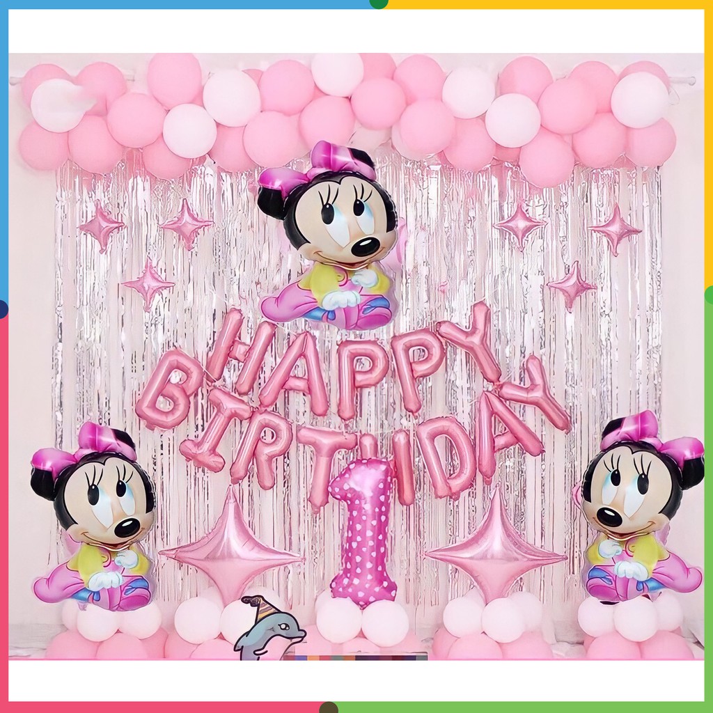 Set bóng trang trí sinh nhật trang trí tiệc thôi nôi cho bé gái, bé trai tuổi chuột đơn giản dễ làm free ship